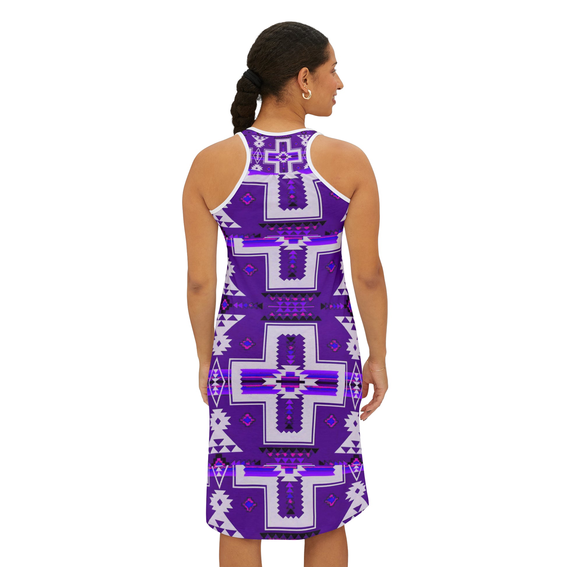 Purple native print Women's Racerback Dress (AOP)
